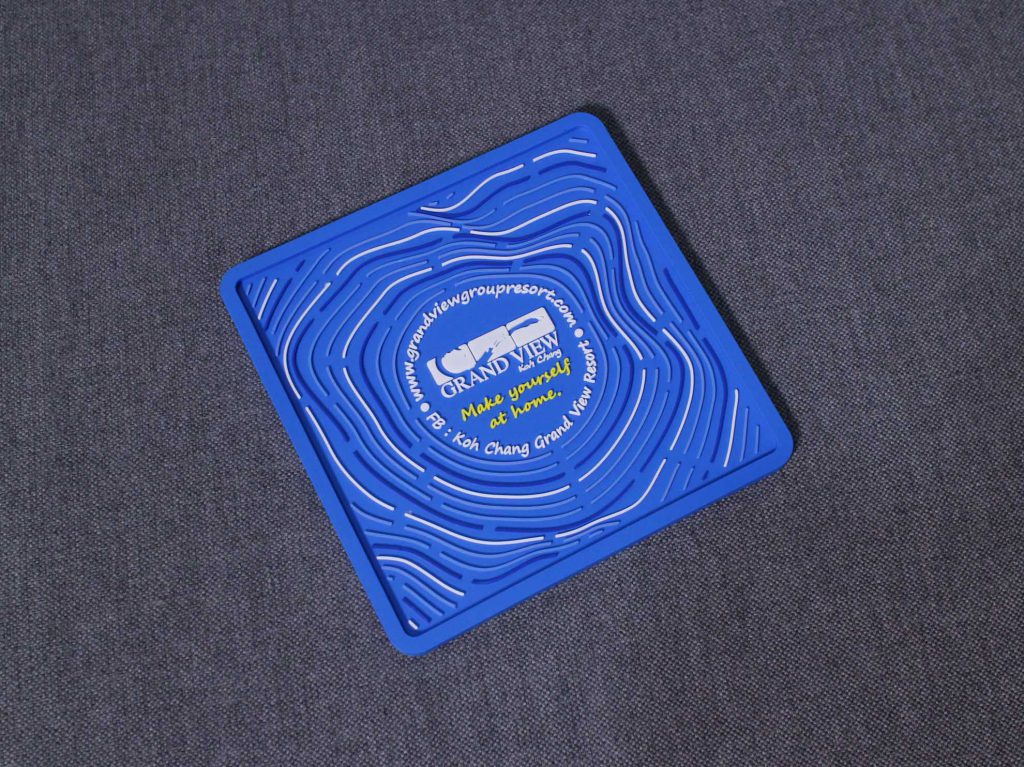 ที่รองแก้วแบบยางหยอด ที่รองแก้วยางหยอดสำหรับ เป็นของแจก ของพรีเมี่ยม ของใช้บนโต๊ะอาหารสำหรับร้านอาหาร ผับ บาร์ ทำโลโก้ตามแบบ ขั้นต่ำในการสั่งผลิต 100 ชิ้น ขนาดและรูปทรงตามต้องการ มาตราฐาน จะอยู่ที่ 9 x 9ซม. ระยะเวลาผลิต 20-25 วัน