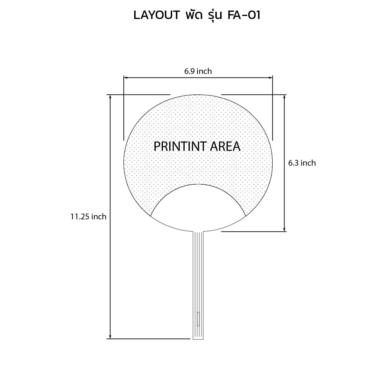 FA-01 พัดกลม ขนาด 6.5 นิ้ว พร้อมพิมพ์ลายไม่จำกัดสี ตามแบบ หน้า-หลัง สั่งผลิตขั้นต่ำ เพียง 100 ด้าม ระยะเวลาผลิต 15 -30 วัน